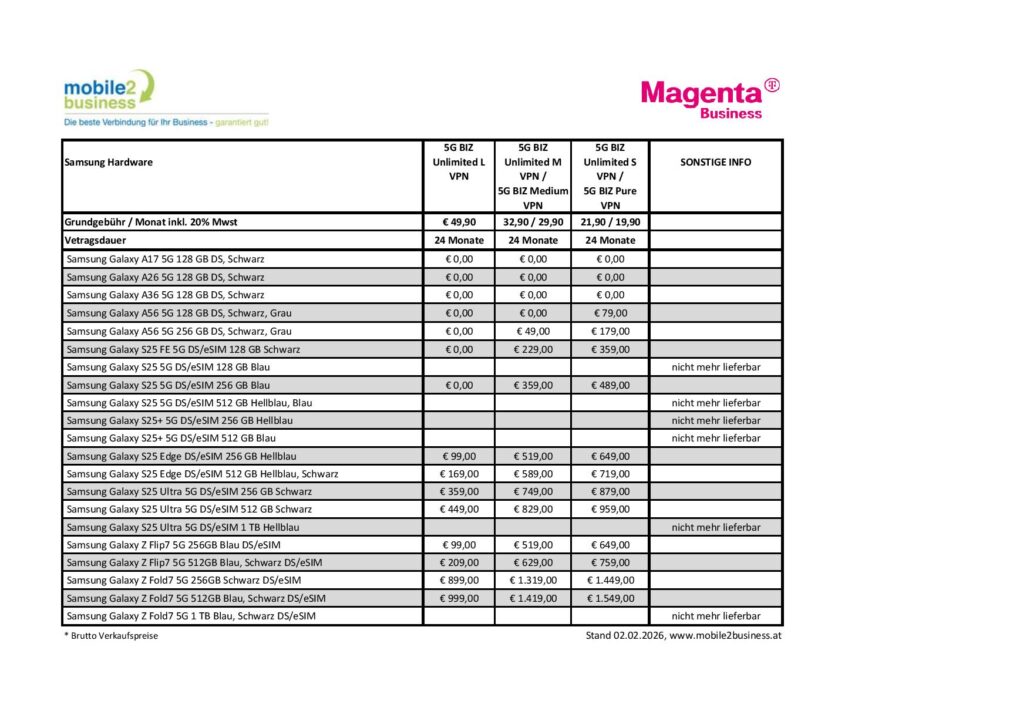 admin2026-02-02 09:01:002026-02-02 13:08:56Unsere aktuelle "Samsung" Hardware Preisliste