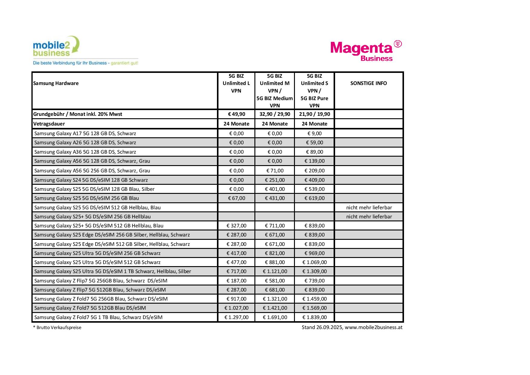 Aktuelle Tarife – 2025